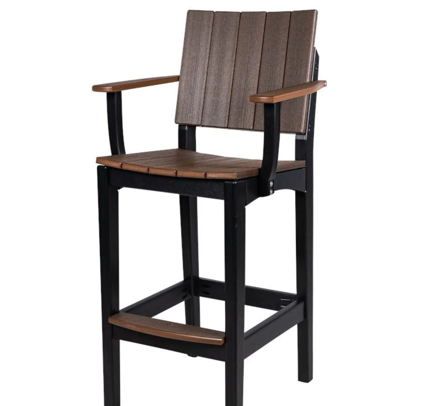 Sunriver Arm Barstool, S-145 (Brazilian Walnut/Black). 22.5”W x 19.5”D x 45.5”H, available in 24” or 30” Seat H